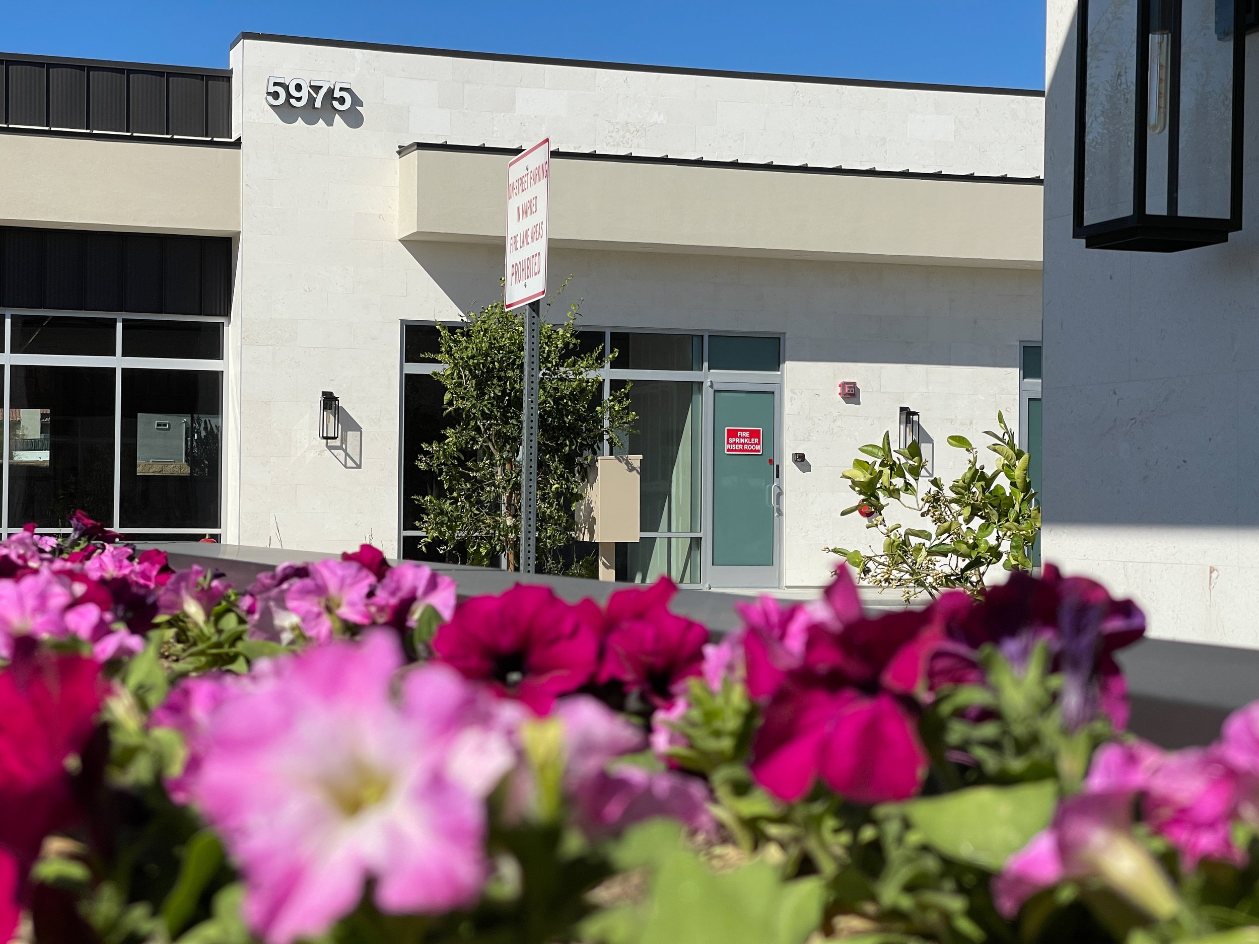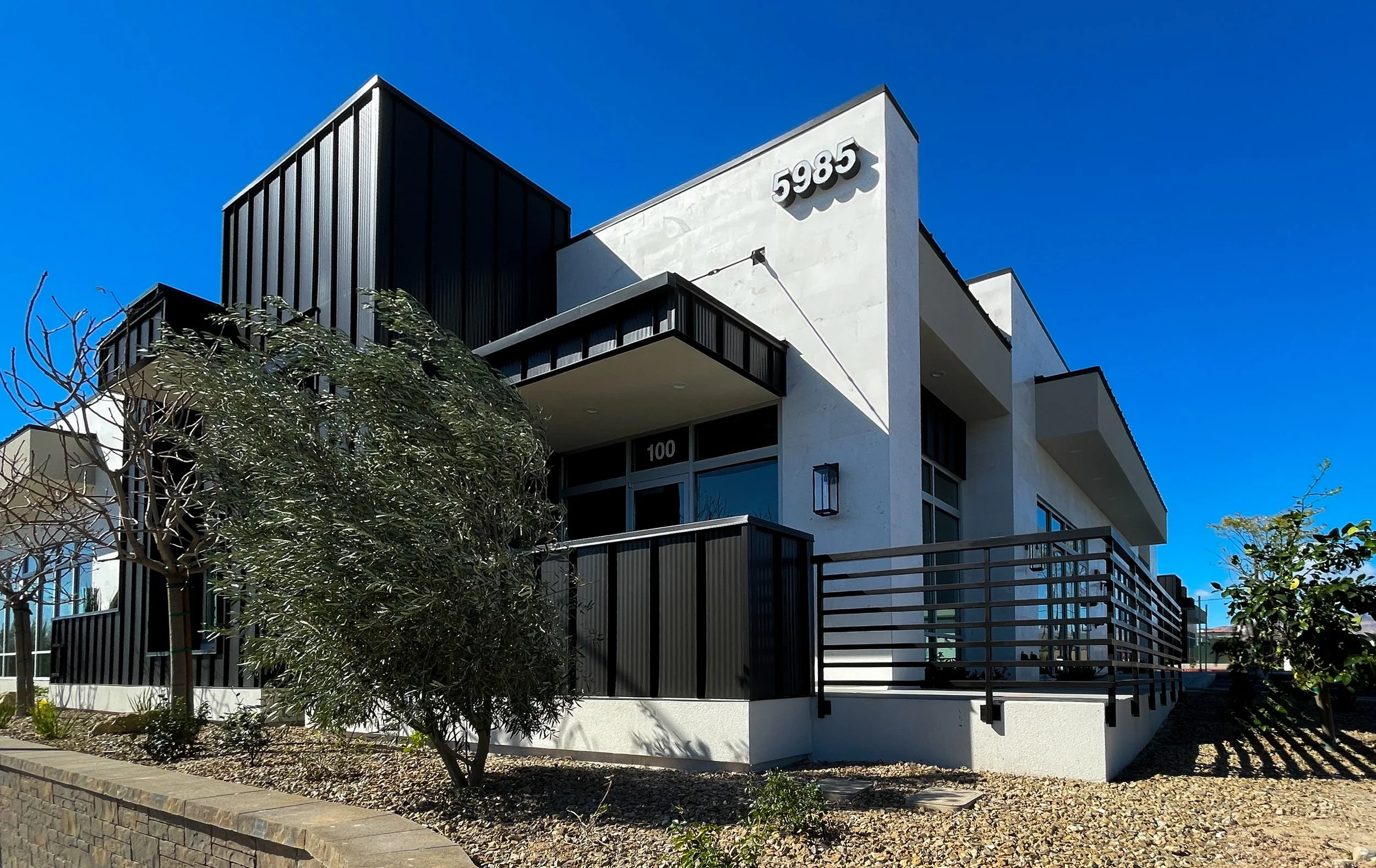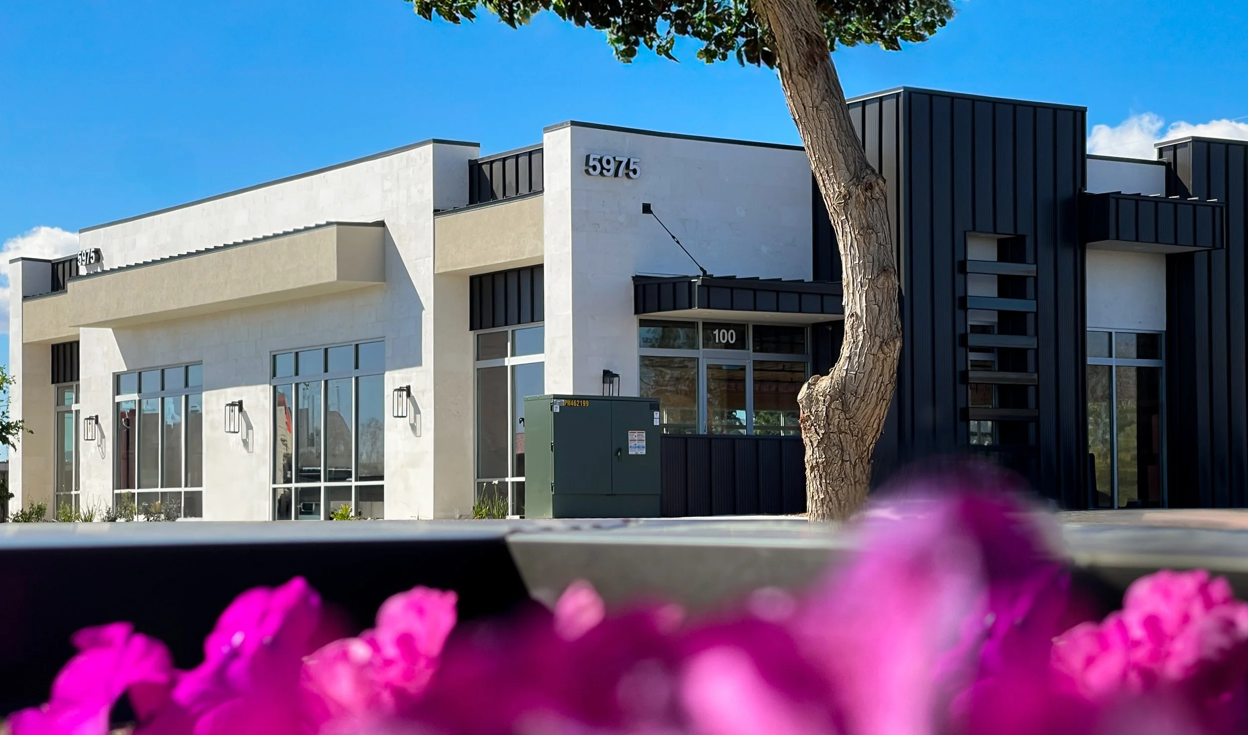 The project is complete with thoughtfully curated, mature landscaping including fruiting citrus trees, olives, oaks, and more—creating a refined yet welcoming environment that blends natural beauty with intentional design. The polished limestone exterior is complemented by striking root beer-toned metal finishes, adding warmth and distinction to the architecture. Technique Offices comprises three ±8,100 SF single-story buildings, each designed to deliver both aesthetic excellence and functional performance for years to come. To learn more about the thoughtful landscaping choices behind this project, be sure to read Curated Greenery at the Technique Offices.